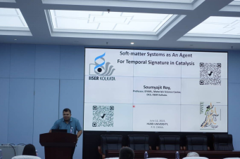 应湖北大学yl23455永利官网邀请,2023年6月12日上午,印度科学教育研究所Soumyajit Roy教授来湖北大学交流访问,并在学院二楼学术报告厅做了题为《Soft-matter Systems as An Agent of Temporal Signature for Catalysis》的精彩报告,本次报告会由yl23455永利官网院长郭志光教授和副院长夏晓红教授主持,相关教师和研究生参加。