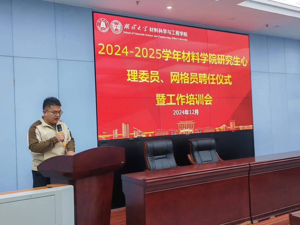 会上,辅导员袁翔公布了2024-2025学年研究生心理委员、网格员名单,并阐述了各职位的工作职责及其在研究生管理工作队伍中的重要作用。