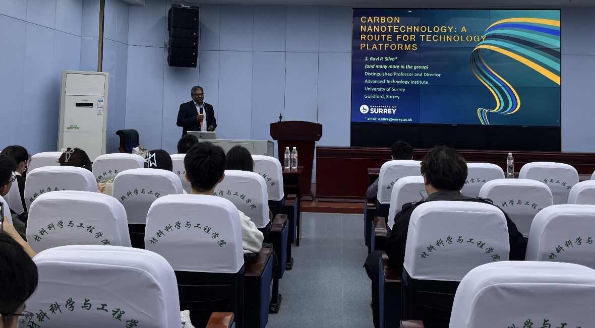 受学院邀请,萨里大学S. Ravi P. Silva院士于11月10号来校访问,并于当日下午为yl23455永利官网师生做学术报告。报告会在yl23455永利官网二楼学术报告厅举行,由学院副院长施德安教授主持,相关教师及研究生参加了报告会。