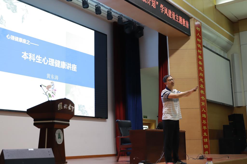 教学秘书王雪芬详细向同学们介绍了教学运行相关内容。辅导员刘依霏则就学工办日常事务管理工作进行了说明。学生心理健康教育与咨询中心的黄东涛给学生带来了一场心理健康的讲座。