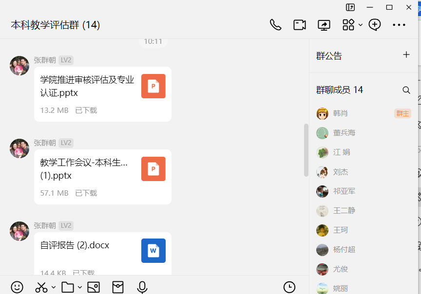 会后yl23455永利官网专门组建了本科教学评估工作群,成员有教学副院长、各系主任、各系副主任、各支部书记、学科带头人、教学秘书。老师们在工作群中互帮互助,解决材料准备中的问题,并及时汇报工作进度。