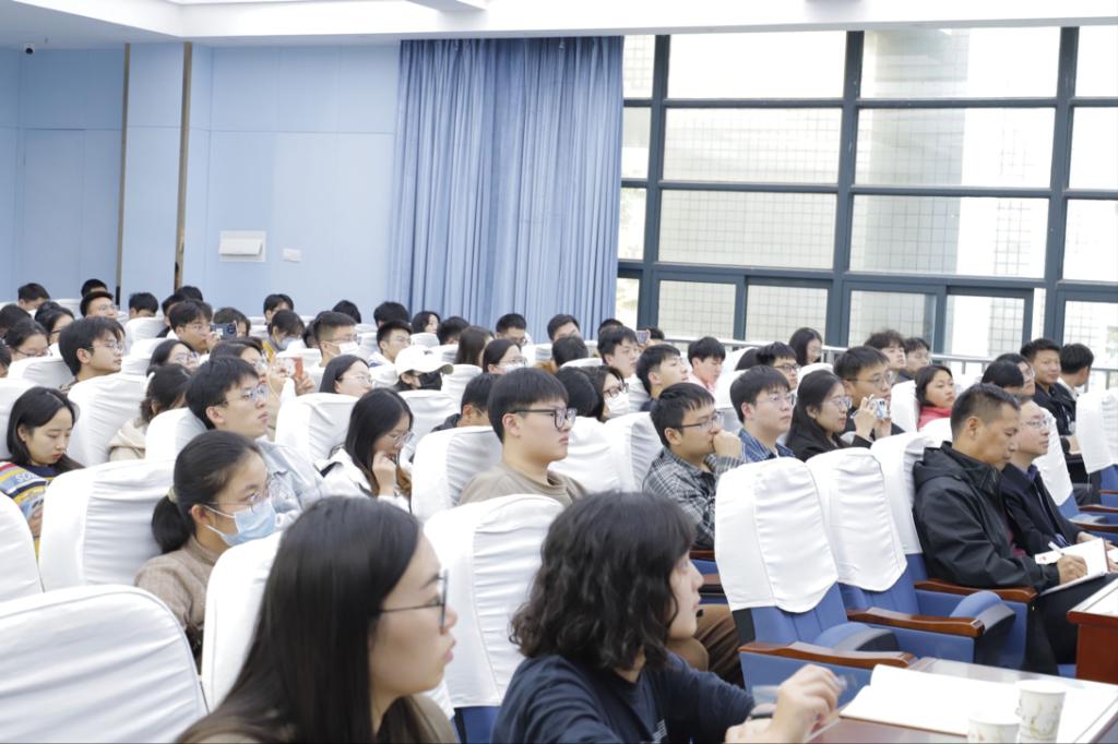 祝欣从“近代大国崛起的历史规律”、“着眼长远发展的重大抉择”、“铸就强国建设的坚实基础”、“当代青年学子的人生航向”四个方面做了阐释和宣讲。祝欣指出,近代大国崛起的历史规律启示了我们重视教育、科技和人才的重要意义;中国共产党在推进现代化建设的过程中,始终高度重视发展教育、科技、人才事业,提出了“百年大计,教育为本”、“科学技术是第一生产力”、“人才是第一资源”等重大论断,作出了科教兴国战略、人才强国战略、创新驱动发展战略等重大部署,为中国的现代化事业奠定了坚实基础,取得了一系列历史性成就。祝欣还详细介绍了我校近年来学科建设的新发展,特别是在人才、项目、平台和校园建设等方面取得的成效,学校正在不断加快“双一流”建设步伐。他鼓励同学们要做到明志、勤学、创新、修德,承担起历史使命,为全面建设社会主义现代化强国贡献青春力量。