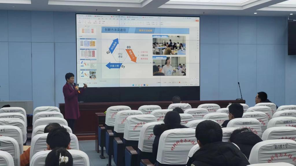 本次赛事由材料学院院长郭志光教授主持,四位参赛选手依次进行了个人的教学设计展示,每位老师都准备充分且声情并茂地展示了自己的教学创新设计;展示结束后,评委们针对各位选手都做了精细的点评,入会老师也都积极出言献策,交流互动,现场气氛热烈。