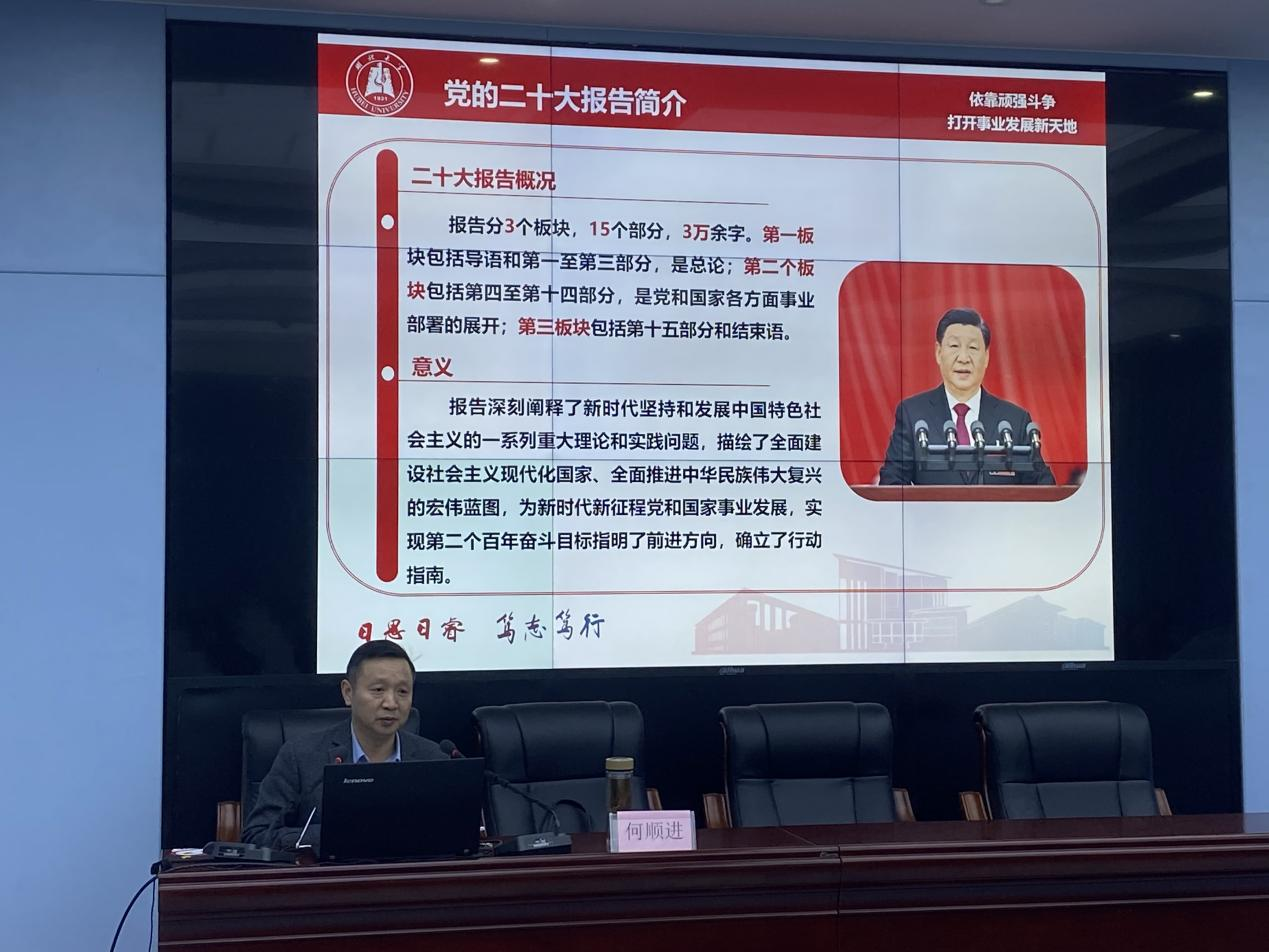 为深入学习党的二十大精神,3月16日下午,校党委宣传部常务副部长何顺进以《依靠顽强斗争打开事业发展新天地》为题来院开展理论宣讲。全院教师参加学习,院党委副书记鲁力格格主持宣讲会。