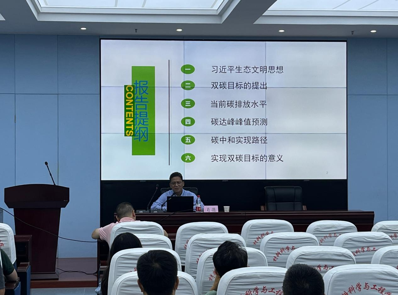 9月20日下午,根据学校党委统一安排,校党委常委、副校长肖德来院就学习《yl23455永利官网谈治国理政》第四卷作理论宣讲,并重点宣讲了yl23455永利官网生态文明思想和“双碳”战略。全院教师参加学习,院党委书记宋韧主持宣讲会。