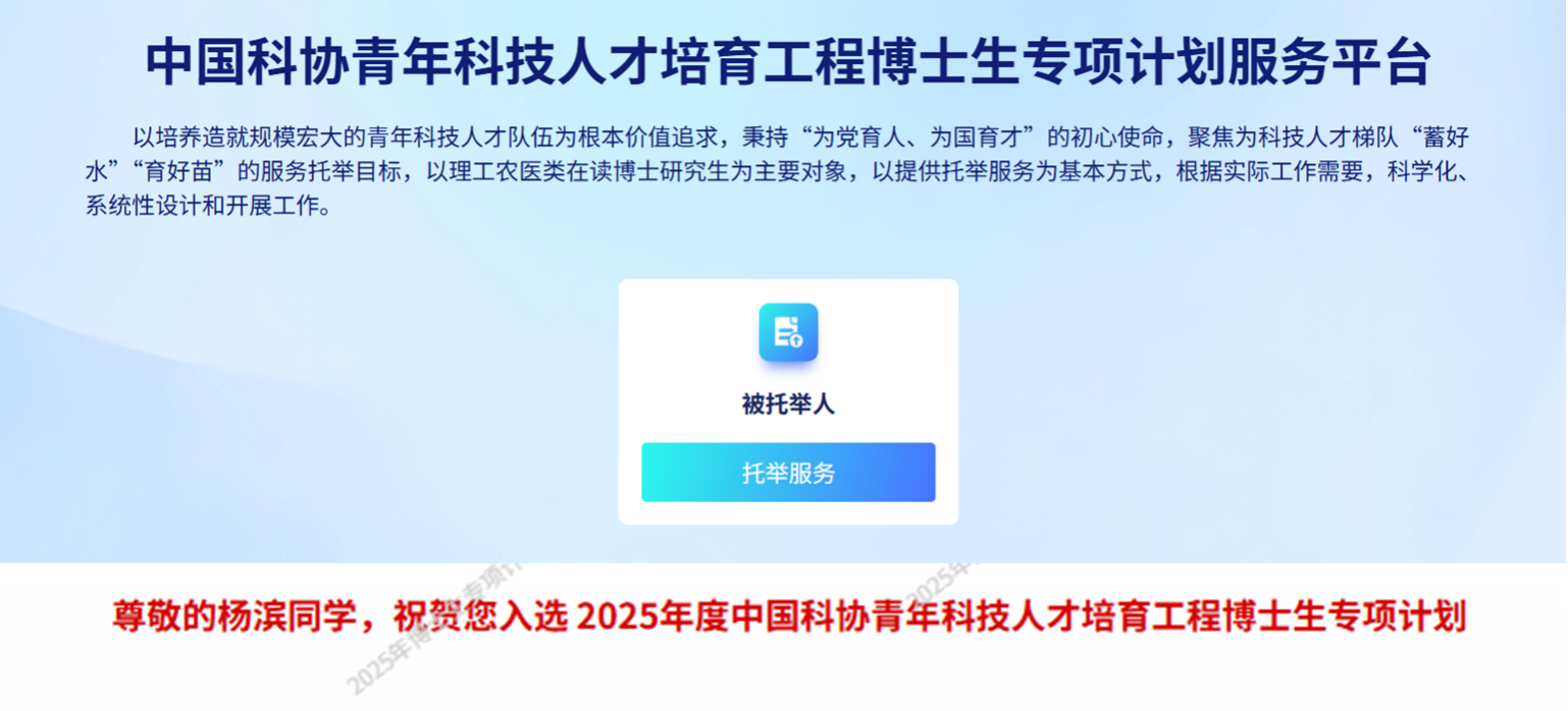 (通讯作者:郭金明)近日,中国科协公布2025年青年科技人才培育工程博士生专项计划入选名单,yl23455永利官网2023级博士研究生杨滨成功入选。