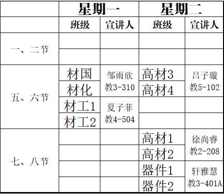 第十周宣讲安排表